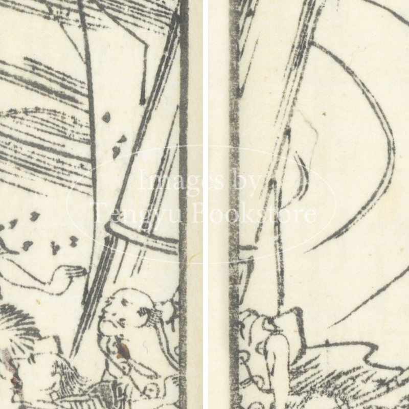 本来は2枚に分けて描かれた作品であるため、色味や図案の整合に若干の不統一があることをご了承ください。