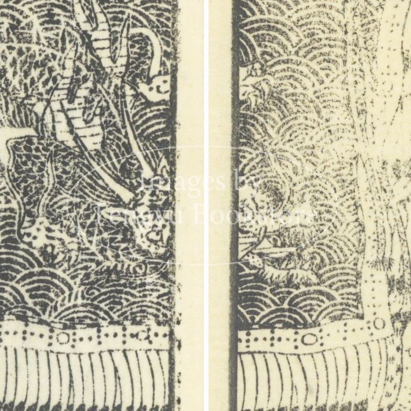 本来は2枚に分けて描かれた作品であるため、色味や図案の整合に若干の不統一があることをご了承ください。