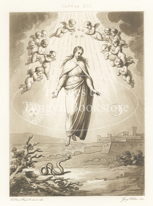 アクアチント銅版画で表現されたイエス・キリストの母親「聖母マリア」の生涯の各場面は、19世紀イタリアの画家フィリッポ・ビジョーリ(1798-1878)によるもの。