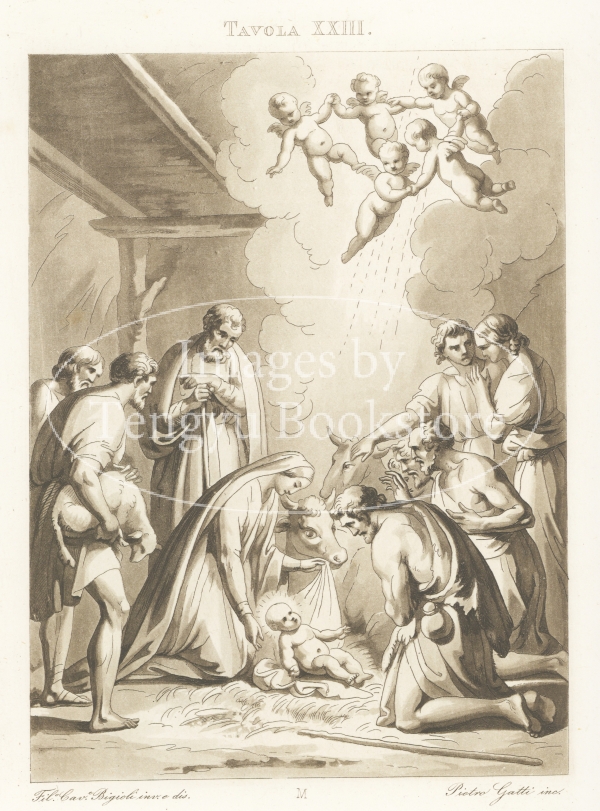 アクアチント銅版画で表現されたイエス・キリストの母親「聖母マリア」の生涯の各場面は、19世紀イタリアの画家フィリッポ・ビジョーリ(1798-1878)によるもの。