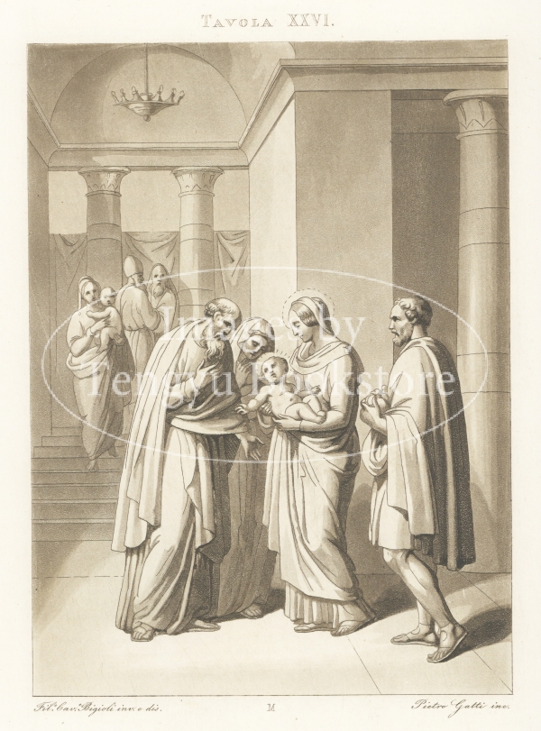 アクアチント銅版画で表現されたイエス・キリストの母親「聖母マリア」の生涯の各場面は、19世紀イタリアの画家フィリッポ・ビジョーリ(1798-1878)によるもの。