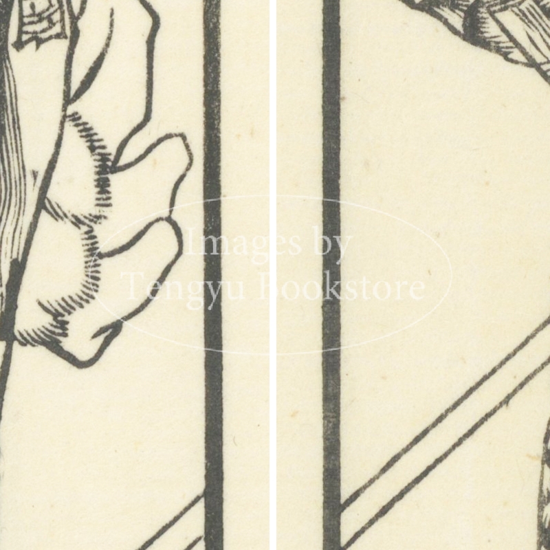 本来は2枚に分けて描かれた作品であるため、色味や図案の整合に若干の不統一があることをご了承ください。