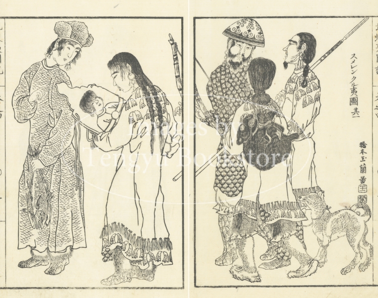 江戸時代後期に出版された樺太の見聞記「北蝦夷図説」からの一枚。江戸の探検家 間宮林蔵(1780-1844)の口述をまとめた本書は、当時の樺太先住民の姿を知ることができる貴重な一冊です。