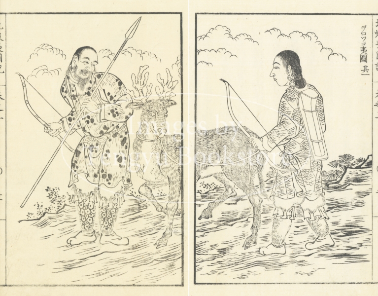 江戸時代後期に出版された樺太の見聞記「北蝦夷図説」からの一枚。江戸の探検家 間宮林蔵(1780-1844)の口述をまとめた本書は、当時の樺太先住民の姿を知ることができる貴重な一冊です。