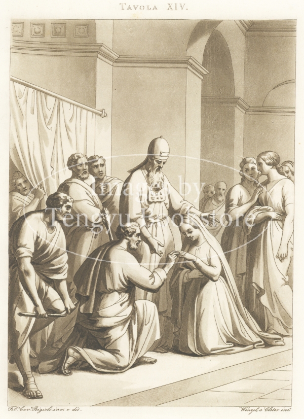 アクアチント銅版画で表現されたイエス・キリストの生涯の各場面は、19世紀イタリアの画家フィリッポ・ビジョーリ(1798-1878)によるもの。