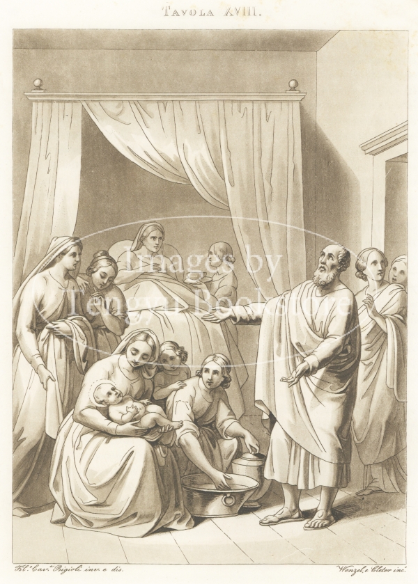 アクアチント銅版画で表現されたイエス・キリストの生涯の各場面は、19世紀イタリアの画家フィリッポ・ビジョーリ(1798-1878)によるもの。