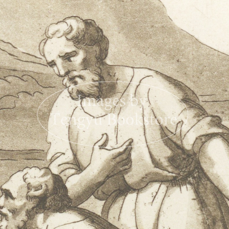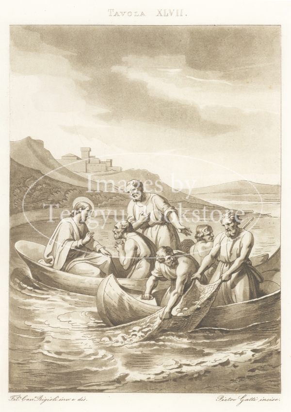 アクアチント銅版画で表現されたイエス・キリストの生涯の各場面は、19世紀イタリアの画家フィリッポ・ビジョーリ(1798-1878)によるもの。