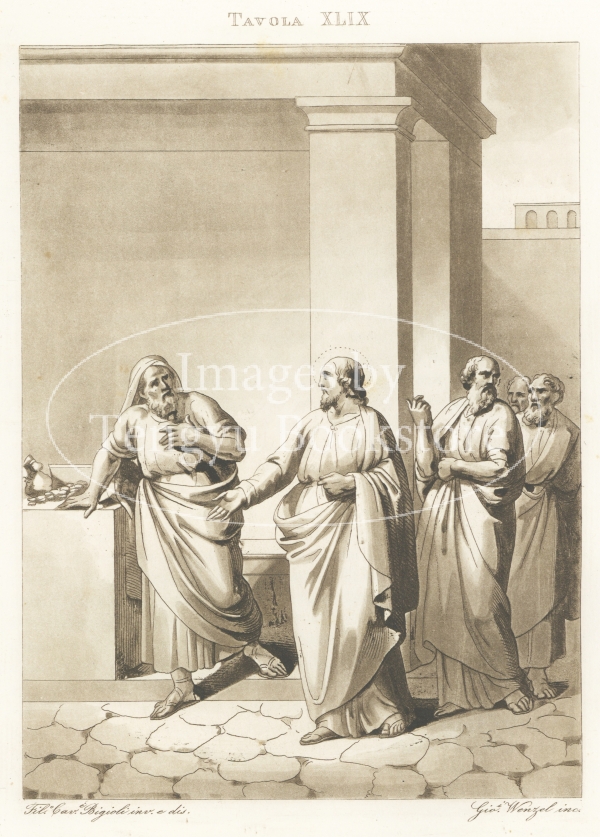 アクアチント銅版画で表現されたイエス・キリストの生涯の各場面は、19世紀イタリアの画家フィリッポ・ビジョーリ(1798-1878)によるもの。