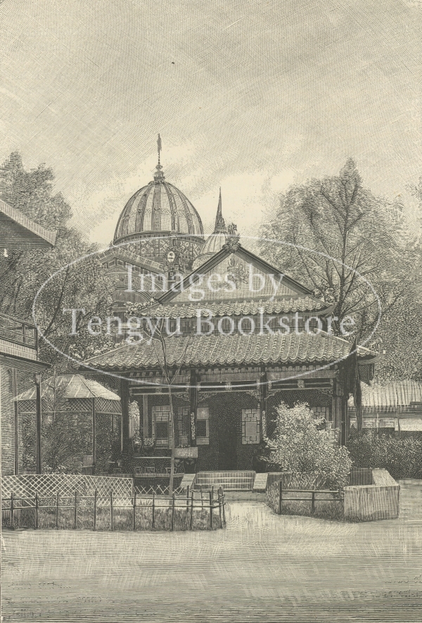 1889年に開催されたフランスでの4回目の博覧会、パリ万国博覧会の記録図集掲載のパビリオン「日本館」の図。