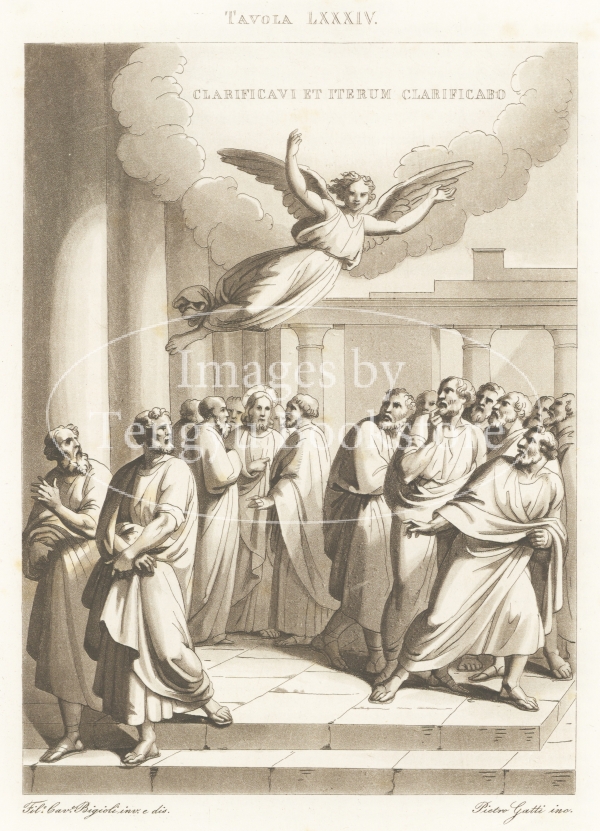 アクアチント銅版画で表現されたイエス・キリストの生涯の各場面は、19世紀イタリアの画家フィリッポ・ビジョーリ(1798-1878)によるもの。