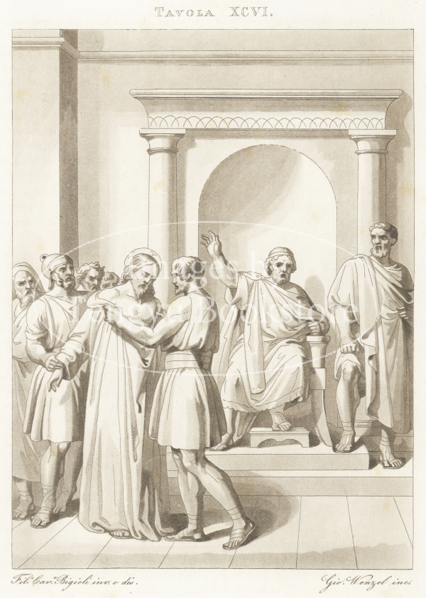 アクアチント銅版画で表現されたイエス・キリストの生涯の各場面は、19世紀イタリアの画家フィリッポ・ビジョーリ(1798-1878)によるもの。