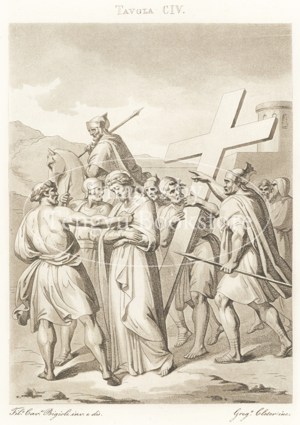 アクアチント銅版画で表現されたイエス・キリストの生涯の各場面は、19世紀イタリアの画家フィリッポ・ビジョーリ(1798-1878)によるもの。