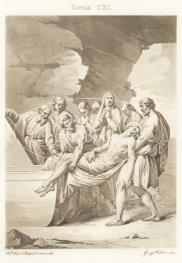 アクアチント銅版画で表現されたイエス・キリストの生涯の各場面は、19世紀イタリアの画家フィリッポ・ビジョーリ(1798-1878)によるもの。