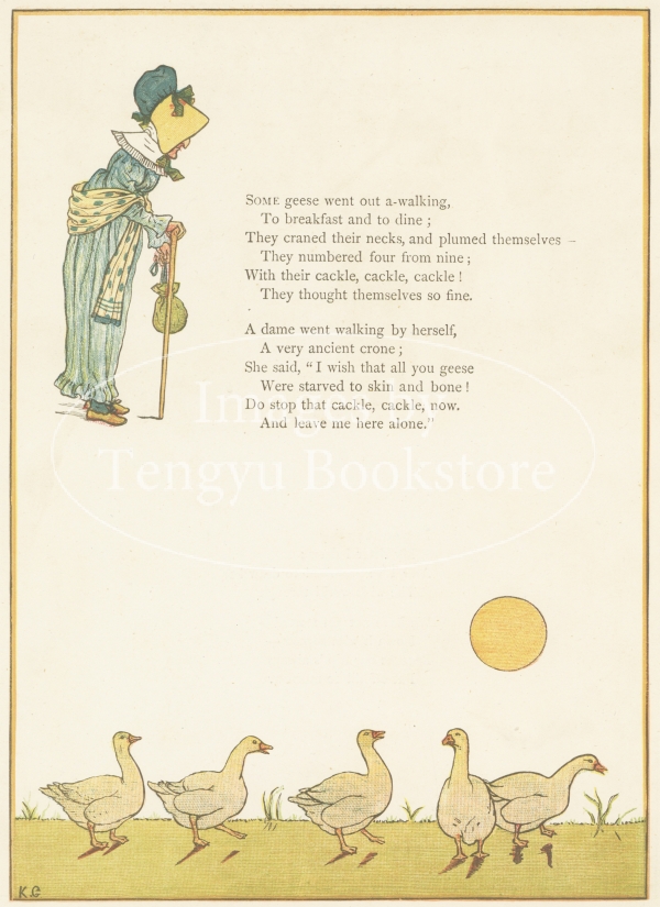 ケイト・グリーナウェイによる詩とイラストを色鮮やかなカラー木版で印刷した本書は、刊行当初から高い人気を博し、今なお世界で愛され続ける絵本の古典です。
