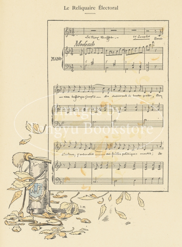 楽譜の周りを色鮮やかに彩る挿絵は、19世紀末~20世紀初頭のイラストレーター ジャン・マテ(1870-1936)によるもの。