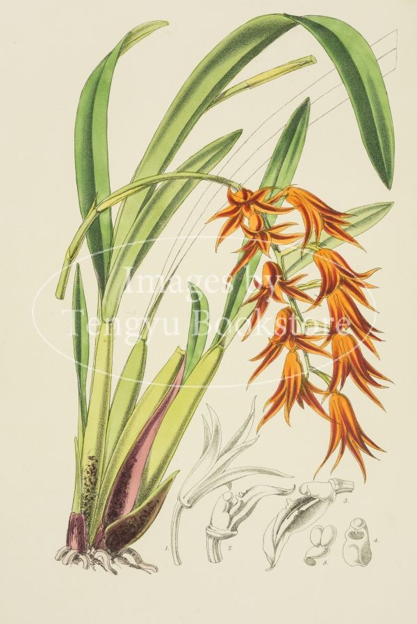 蘭の複雑な構造を正確に描き切った色鮮やかな手彩色石版図を多数収録した本書は、植物図譜の名品としてきわめて評価の高い、ウォルター・フィッチの代表作です。
