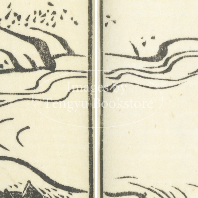 本来は2枚に分けて描かれた作品であるため、色味や図案の整合に若干の不統一があることをご了承ください。
