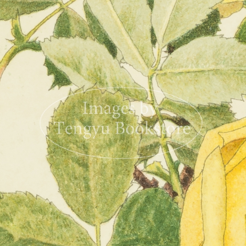 その美的な完成度はもちろんのこと、植物学的にもきわめて正確な描写が光るこれらの図版は、19世紀フランスで刊行された植物図譜の金字塔として名高いルドゥーテ「バラ図譜」にも引けを取らない傑作として、今なお人気の高いボタニカルアートです。