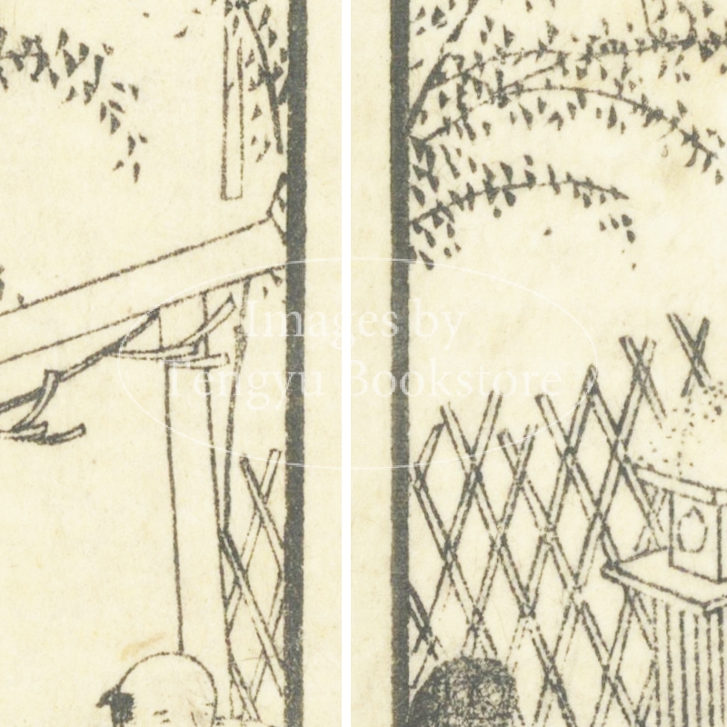 本来は2枚に分けて描かれた作品であるため、色味や図案の整合に若干の不統一があることをご了承ください。