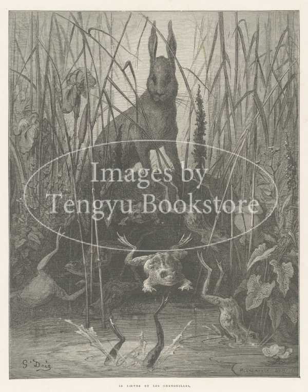 17世紀フランスの詩人 ジャン・ド・ラ・フォンテーヌ(1621-1695)の代表作「寓話」に、19世紀フランスの画家 ギュスターヴ・ドレ(1832-1888)が挿絵を付けたドレ版挿絵本「ラ・フォンテーヌの寓話」からの一枚。