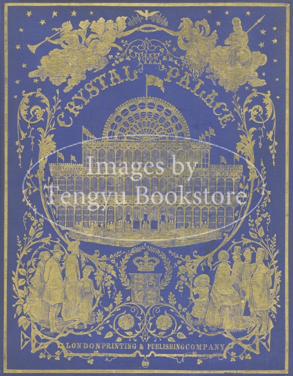 19世紀中期のロンドン万博のカタログ「クリスタル・パレスの歴史と解説、および1851年における世界の産業の展示会」の表紙。