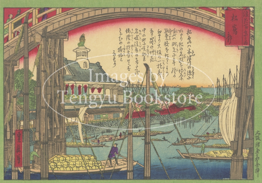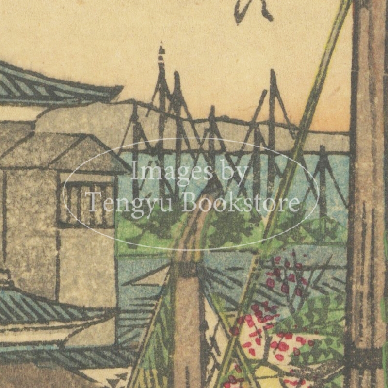 関西の風景版画を多く手掛けた明治期大阪の浮世絵師 長谷川貞信による大阪名所シリーズ「浪花百景」中の1枚。
