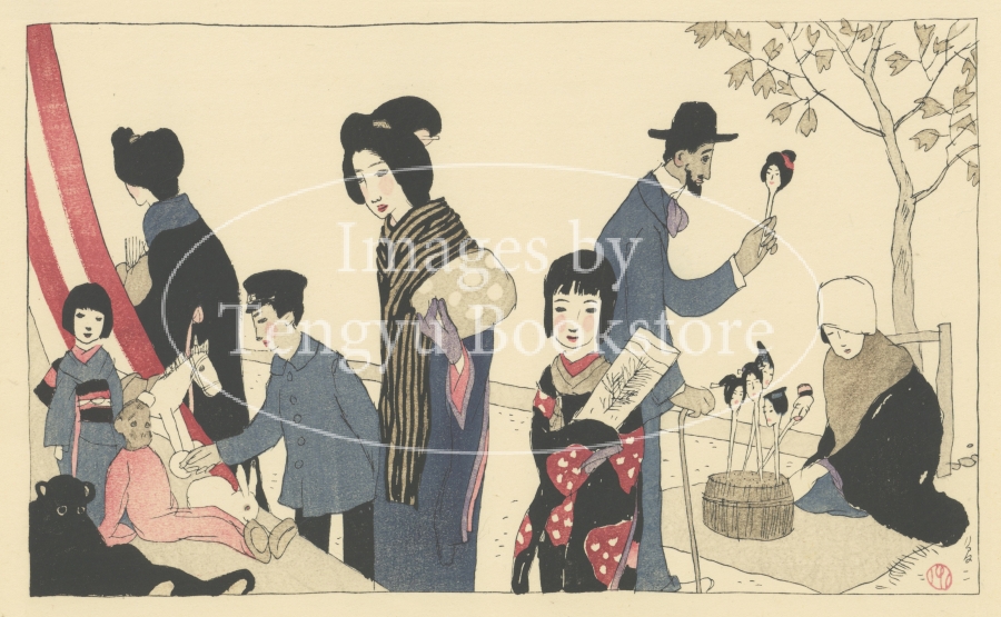 明治・大正時代の画家、竹久夢二(1884-1934)の版画集「夢二詩画集」(昭和16年版) 収録の木版画。