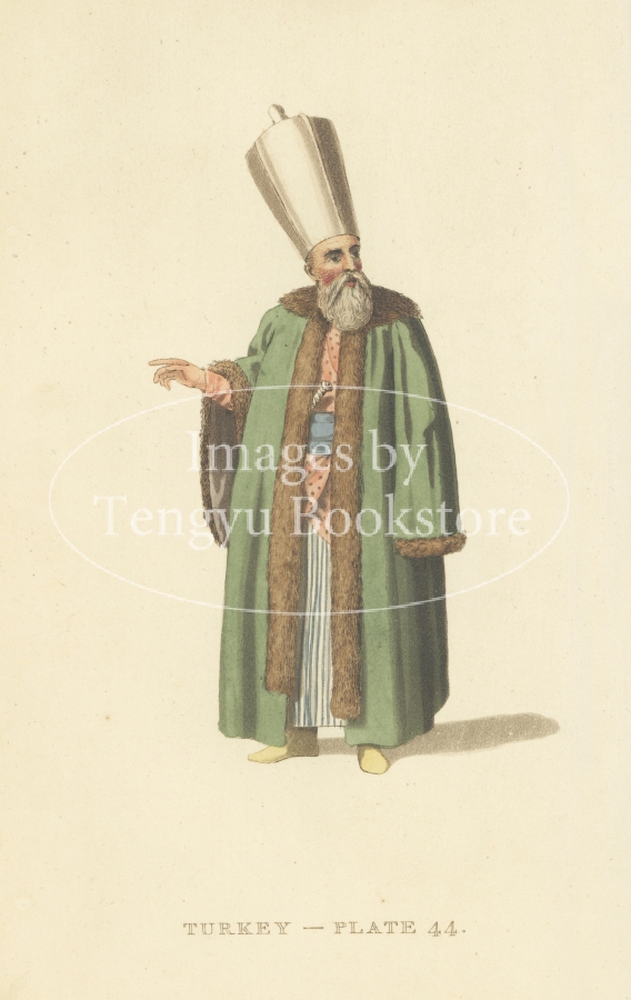 13世紀から20世紀までトルコを治めたオスマン帝国後期の人々の姿を、手彩色銅版画で記録した貴重な資料です。