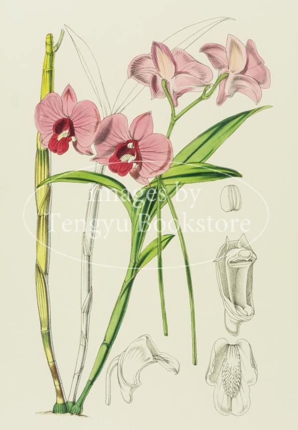 蘭の複雑な構造を正確に描き切った色鮮やかな手彩色石版図を多数収録した本書は、植物図譜の名品としてきわめて評価の高い、ウォルター・フィッチの代表作です。