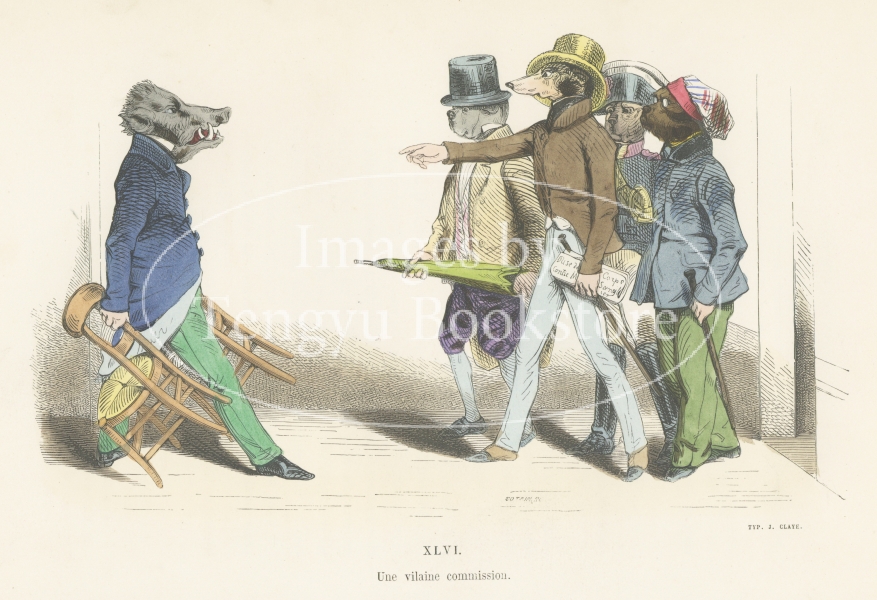 グランヴィルが得意とした、人それぞれの性格を動物にたとえて表現するこの擬人化動物のイラストは、19世紀のフランス人を典型的に描き出す風刺戯画として、発表時、大きな成功を収めました。的確な動物の描写と人間臭い仕草が融合したこれらのキャラクターは、当時とは社会情勢の変わった現代においても十二分に目を愉しませる奇想画の傑作です。