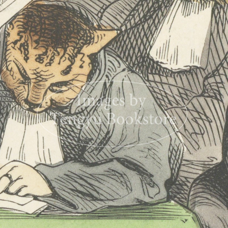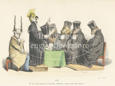 グランヴィルが得意とした、人それぞれの性格を動物にたとえて表現するこの擬人化動物のイラストは、19世紀のフランス人を典型的に描き出す風刺戯画として、発表時、大きな成功を収めました。的確な動物の描写と人間臭い仕草が融合したこれらのキャラクターは、当時とは社会情勢の変わった現代においても十二分に目を愉しませる奇想画の傑作です。