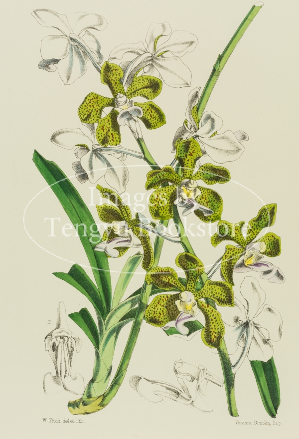 蘭の複雑な構造を正確に描き切った色鮮やかな手彩色石版図を多数収録した本書は、植物図譜の名品としてきわめて評価の高い、ウォルター・フィッチの代表作です。