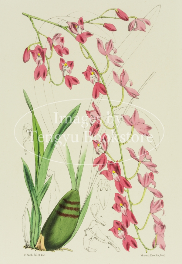蘭の複雑な構造を正確に描き切った色鮮やかな手彩色石版図を多数収録した本書は、植物図譜の名品としてきわめて評価の高い、ウォルター・フィッチの代表作です。