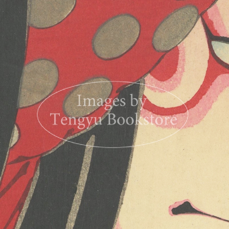 幕末から明治にかけて活躍した浮世絵師 豊原国周(1835-1900)による、三枚続の役者絵。台湾の祖として名高い中国の英雄 鄭成功(国性爺)を主人公とした演目「国性爺合戦」を描いたもの。