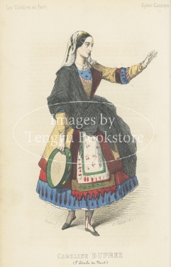 19世紀フランスの有名人を肖像画とともに紹介したシリーズ本「現代有名人のイラストギャラリー」中の第1巻「パリの劇場」収録のイラスト。挿絵画家ユスターシュ・ロルセーが当時実在したパリの舞台俳優たちを描いたもの。