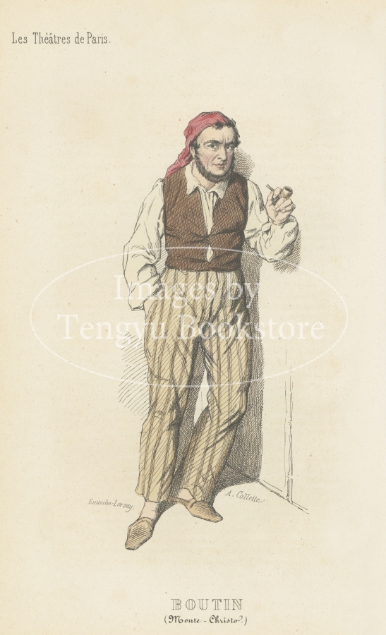 19世紀フランスの有名人を肖像画とともに紹介したシリーズ本「現代有名人のイラストギャラリー」中の第1巻「パリの劇場」収録のイラスト。挿絵画家ユスターシュ・ロルセーが当時実在したパリの舞台俳優たちを描いたもの。