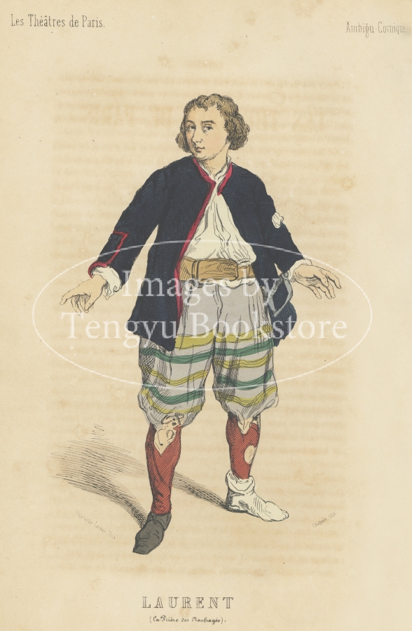 19世紀フランスの有名人を肖像画とともに紹介したシリーズ本「現代有名人のイラストギャラリー」中の第1巻「パリの劇場」収録のイラスト。挿絵画家ユスターシュ・ロルセーが当時実在したパリの舞台俳優たちを描いたもの。
