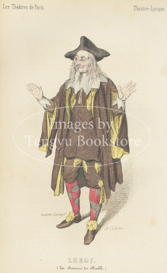 19世紀フランスの有名人を肖像画とともに紹介したシリーズ本「現代有名人のイラストギャラリー」中の第1巻「パリの劇場」収録のイラスト。挿絵画家ユスターシュ・ロルセーが当時実在したパリの舞台俳優たちを描いたもの。