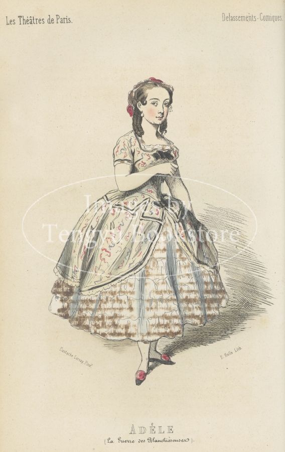 19世紀フランスの有名人を肖像画とともに紹介したシリーズ本「現代有名人のイラストギャラリー」中の第1巻「パリの劇場」収録のイラスト。挿絵画家ユスターシュ・ロルセーが当時実在したパリの舞台俳優たちを描いたもの。