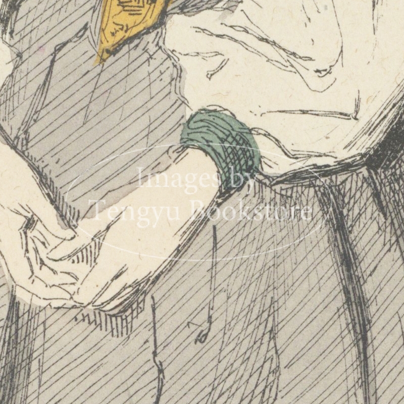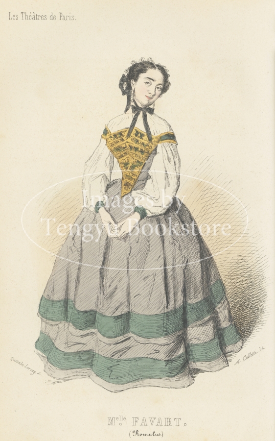 19世紀フランスの有名人を肖像画とともに紹介したシリーズ本「現代有名人のイラストギャラリー」中の第1巻「パリの劇場」収録のイラスト。挿絵画家ユスターシュ・ロルセーが当時実在したパリの舞台俳優たちを描いたもの。