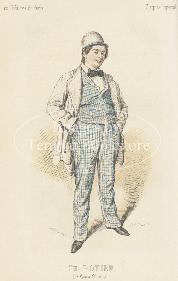 19世紀フランスの有名人を肖像画とともに紹介したシリーズ本「現代有名人のイラストギャラリー」中の第1巻「パリの劇場」収録のイラスト。挿絵画家ユスターシュ・ロルセーが当時実在したパリの舞台俳優たちを描いたもの。