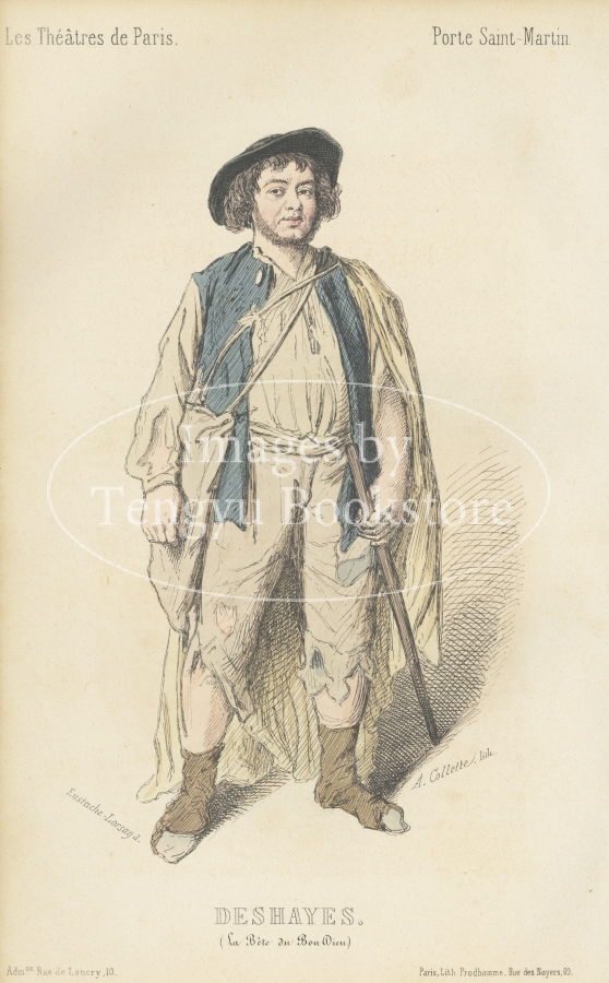 19世紀フランスの有名人を肖像画とともに紹介したシリーズ本「現代有名人のイラストギャラリー」中の第1巻「パリの劇場」収録のイラスト。挿絵画家ユスターシュ・ロルセーが当時実在したパリの舞台俳優たちを描いたもの。