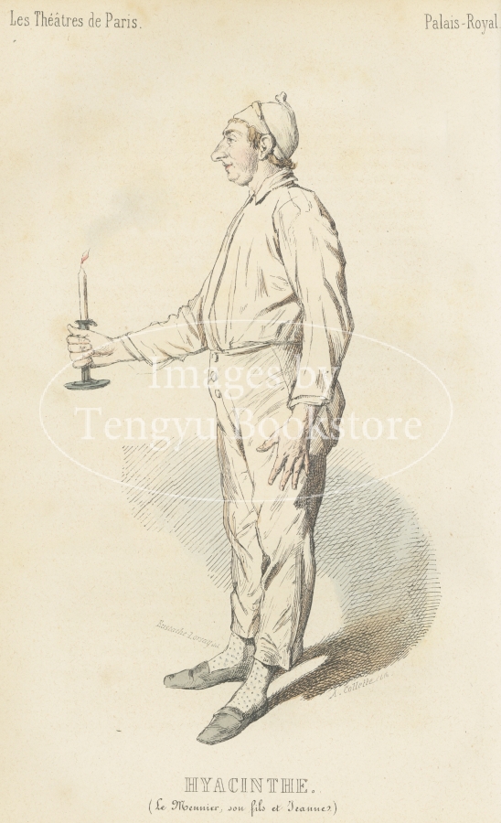 19世紀フランスの有名人を肖像画とともに紹介したシリーズ本「現代有名人のイラストギャラリー」中の第1巻「パリの劇場」収録のイラスト。挿絵画家ユスターシュ・ロルセーが当時実在したパリの舞台俳優たちを描いたもの。