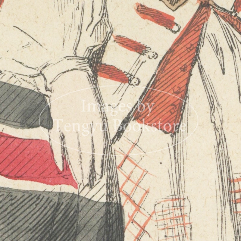 19世紀フランスの有名人を肖像画とともに紹介したシリーズ本「現代有名人のイラストギャラリー」中の第1巻「パリの劇場」収録のイラスト。挿絵画家ユスターシュ・ロルセーが当時実在したパリの舞台俳優たちを描いたもの。