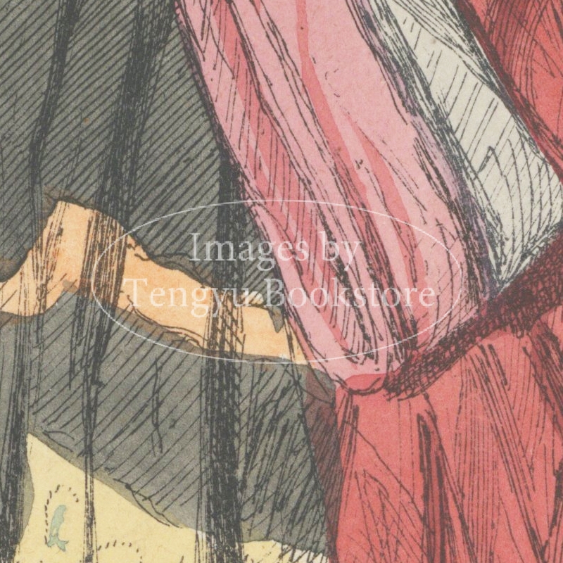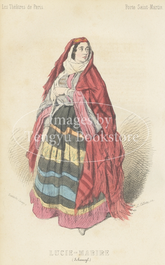 19世紀フランスの有名人を肖像画とともに紹介したシリーズ本「現代有名人のイラストギャラリー」中の第1巻「パリの劇場」収録のイラスト。挿絵画家ユスターシュ・ロルセーが当時実在したパリの舞台俳優たちを描いたもの。