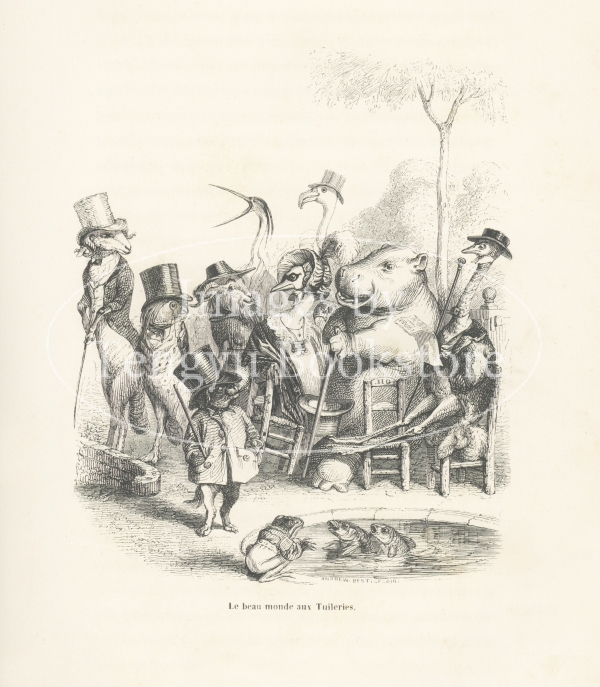 19世紀フランスの挿絵画家J.J.グランヴィル(1803-1847)の代表作「動物たちの私生活及び公生活の情景」の挿絵。