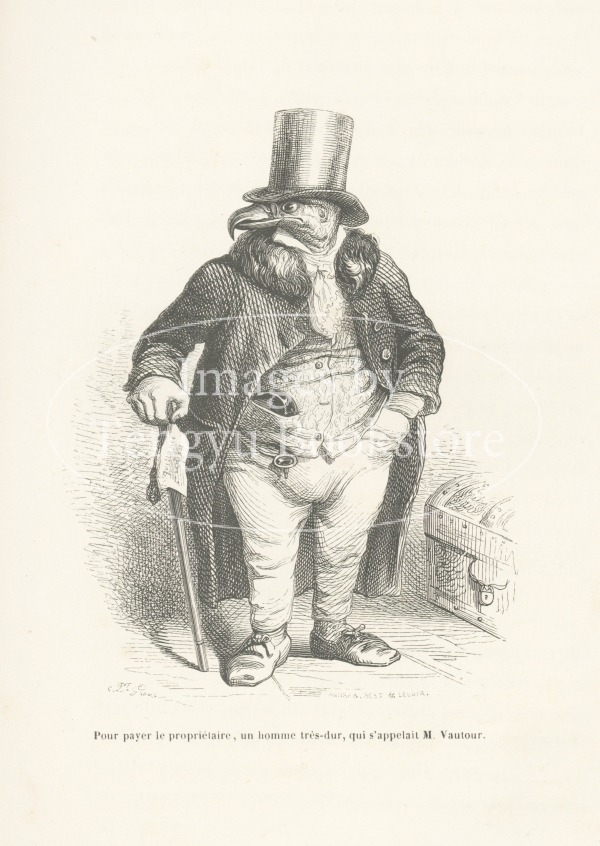 19世紀フランスの挿絵画家J.J.グランヴィル(1803-1847)の代表作「動物たちの私生活及び公生活の情景」の挿絵。
