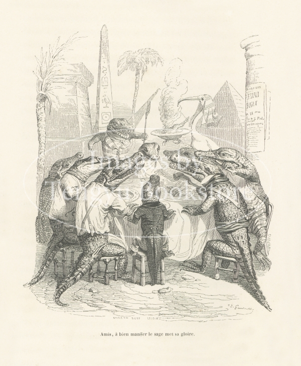 19世紀フランスの挿絵画家J.J.グランヴィル(1803-1847)の代表作「動物たちの私生活及び公生活の情景」の挿絵。