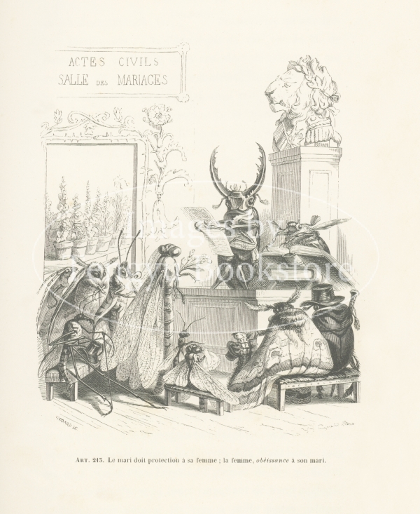 19世紀フランスの挿絵画家J.J.グランヴィル(1803-1847)の代表作「動物たちの私生活及び公生活の情景」の挿絵。