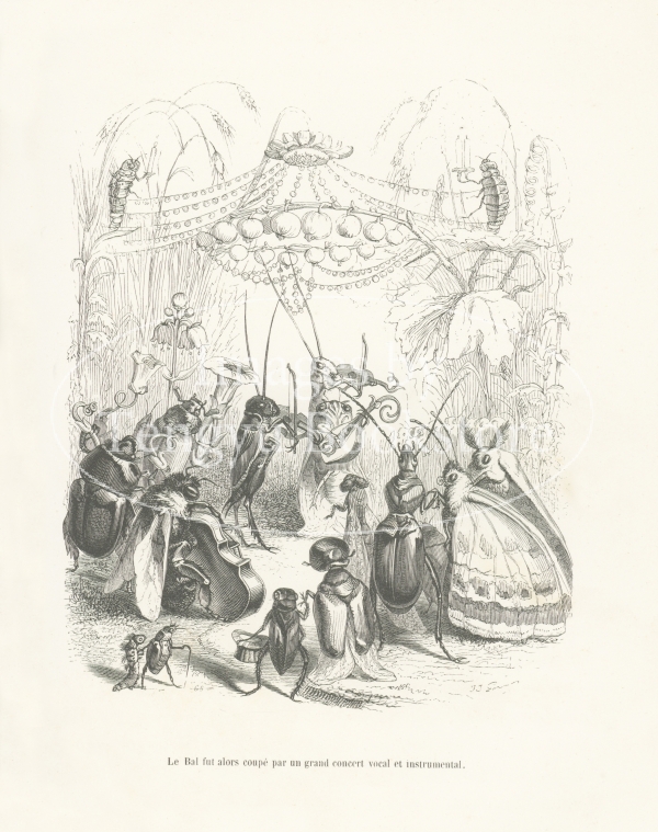 19世紀フランスの挿絵画家J.J.グランヴィル(1803-1847)の代表作「動物たちの私生活及び公生活の情景」の挿絵。